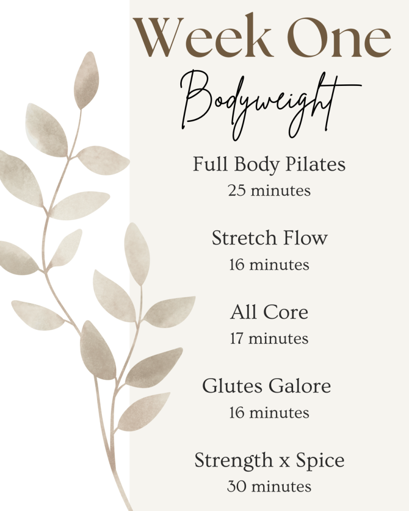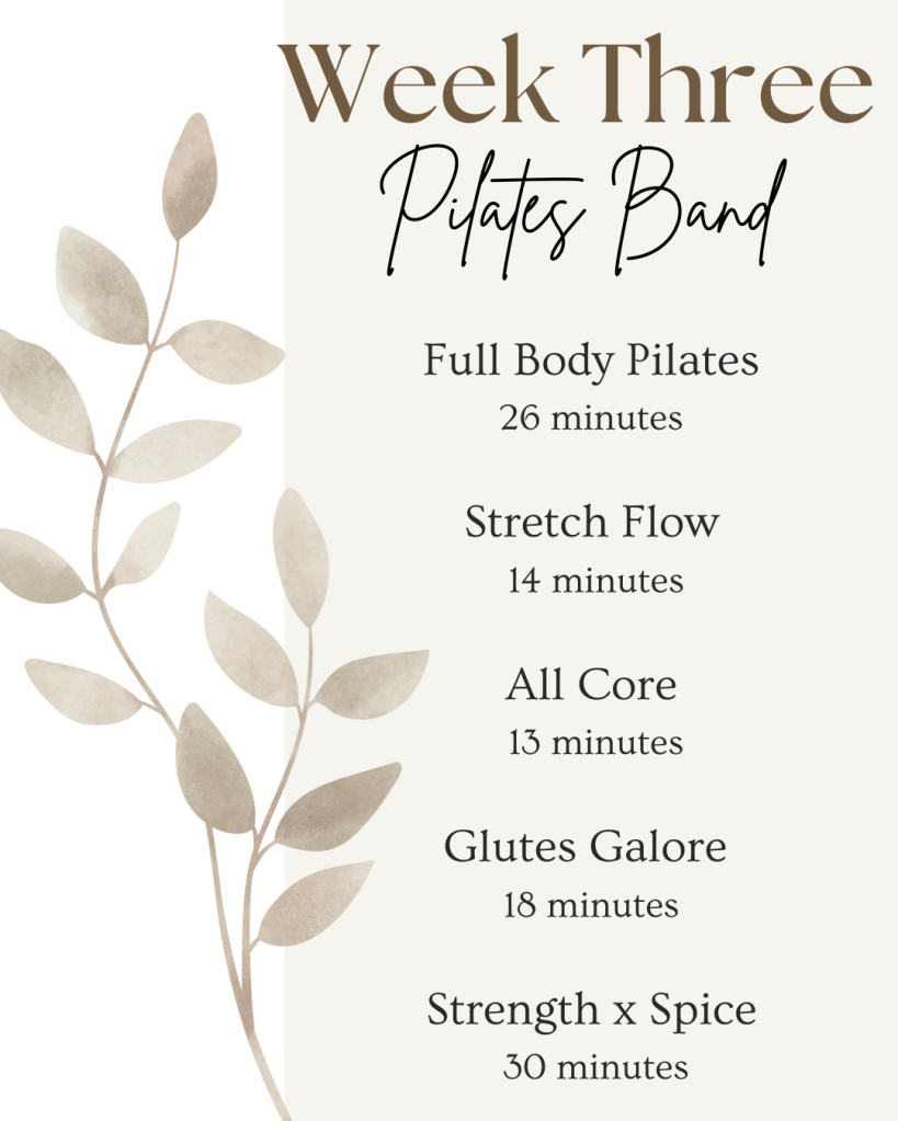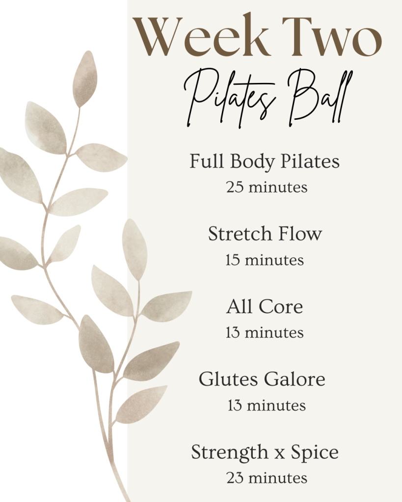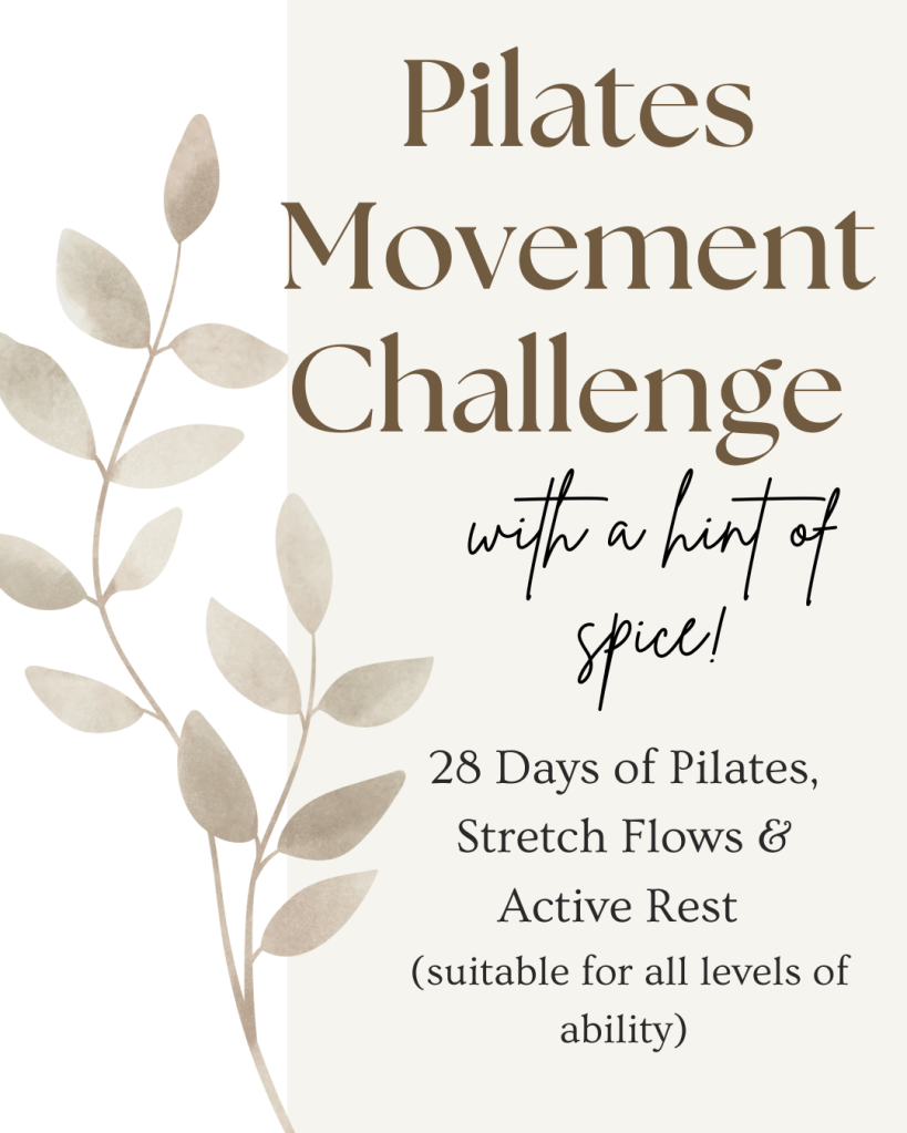 - 28 Day Schedule of Pilates workouts & stretch flows (with 2 active rest days a week)